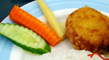 炸得酥脆的可樂餅聽說是日本人的發明,在那個沒有肉吃的二戰時代,這餅不知滿足了多少人的口慾、帶給人們無限的希望,哈!吃了也真的有這種感覺耶!