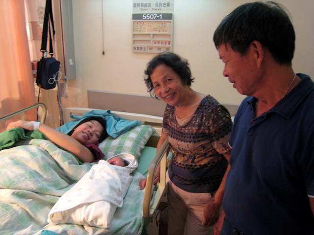 阿公、阿嬤一大早就迫不及待地到醫院去探望。