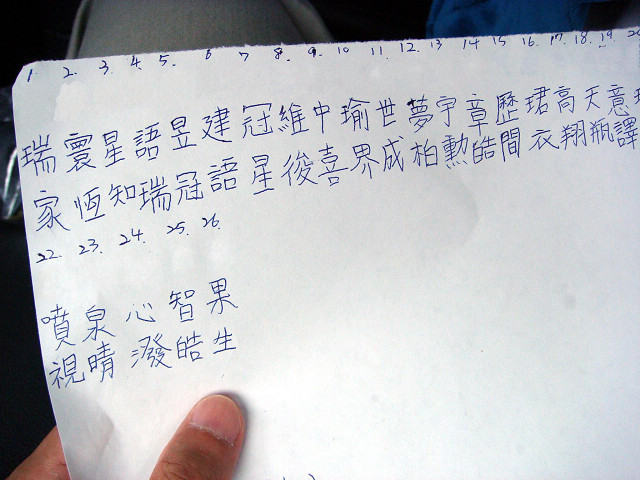 Sandy 一聽說小 baby 還沒有取名字,馬上拿了白紙,行雲流水般地寫了一大串的名字,