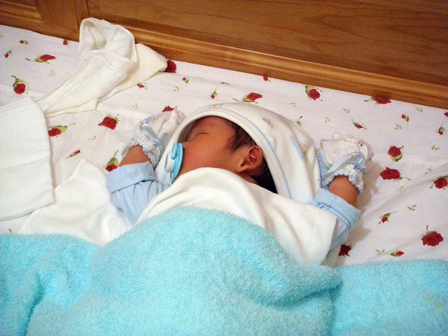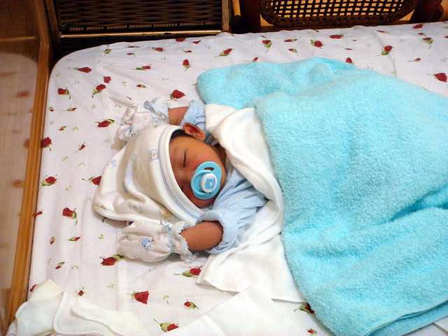 她們到時小 baby 還在睡覺,嘴裡含著有一半臉大的大奶嘴!