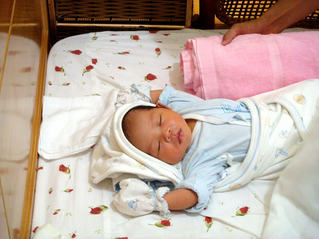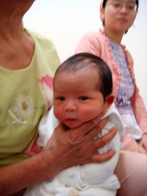 小小的 baby 在被拍嗝,父母很辛苦的,從這麼小慢慢的把我們養大! x-D