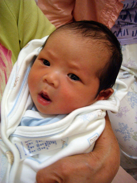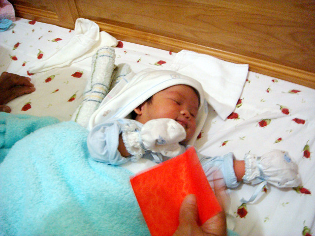媽咪包了個紅包送給小 baby,願他乖乖長大,哈!他好像懂了似地在笑耶!