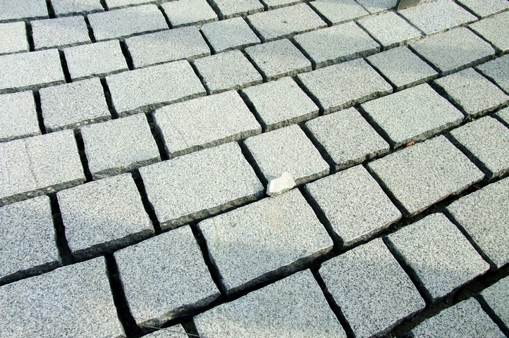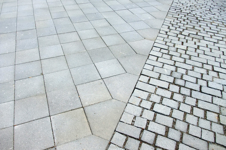 人行道上有兩種不同的地磚,一邊是給人走的,