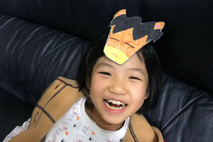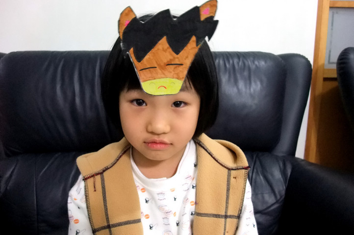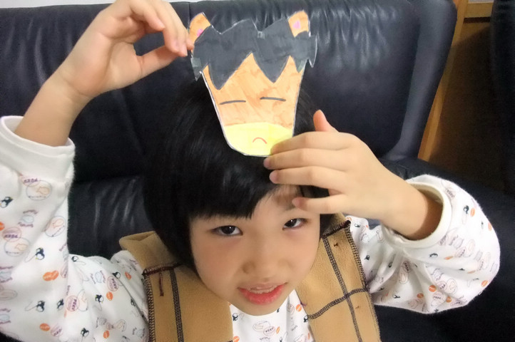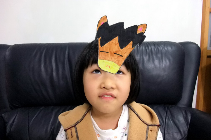 「就是像這樣戴在頭上,然後到別的班上去表演的!」:Wendy 說。