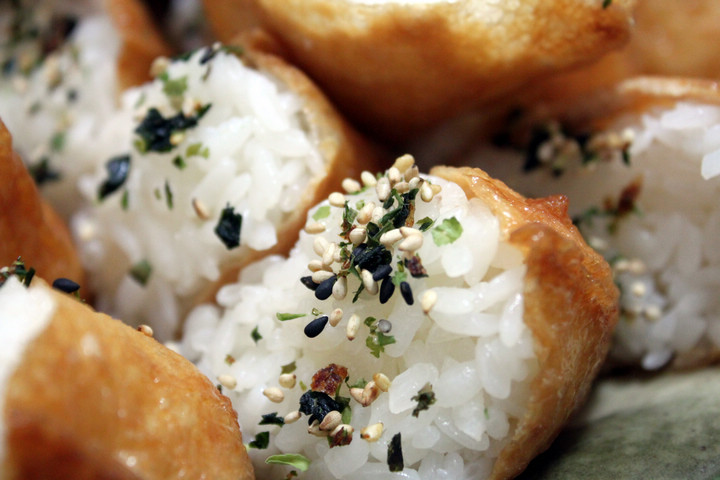這豆皮甜美好吃不說,加了壽司粉的甜醋飯,更是讓人一個接一個地吃個不停,