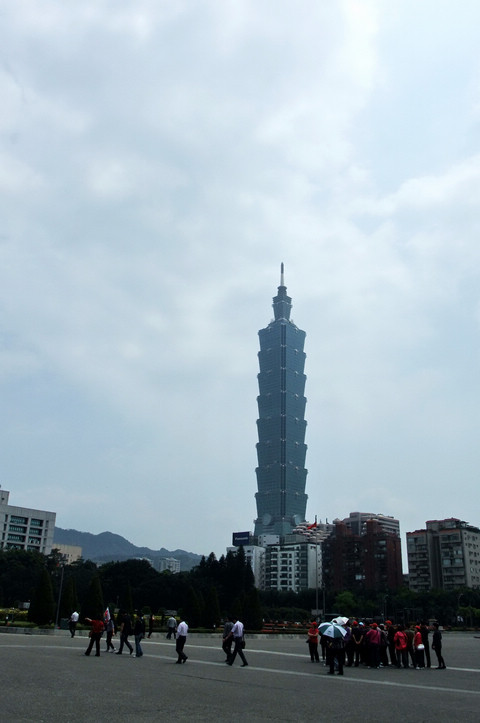 另一頭是台北 101,高聳入雲,是來台旅人的最愛。