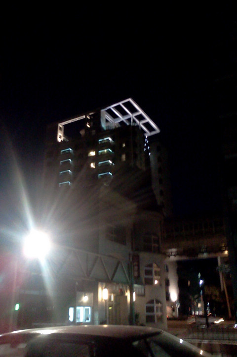 拿起相機拍,還被忽然發光的探照燈嚇了一大跳,