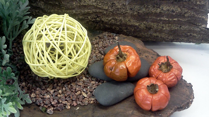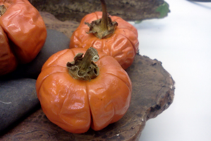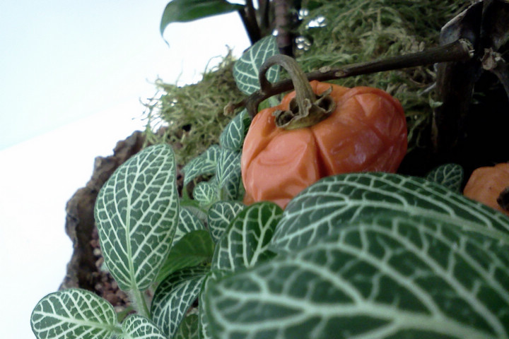 很小、很迷你的觀賞用南瓜,耀眼的橘紅色讓人不注意也難。