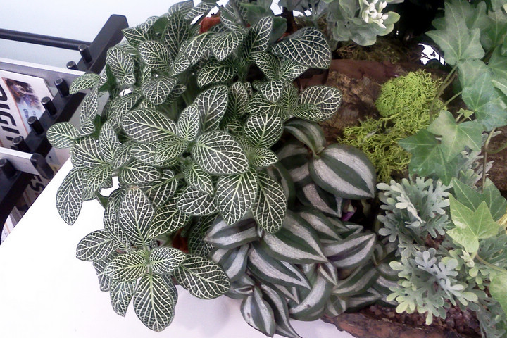 用了好幾種植栽,有:白網紋草、銀葉菊...