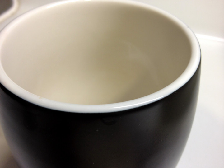 從側邊看去可以發現杯口是內縮的,同事說內凹的設計也有保溫的效果!
