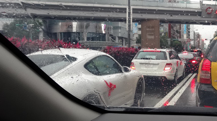 清晨 7 點多,開著車在陰雨中往台大方向前進,