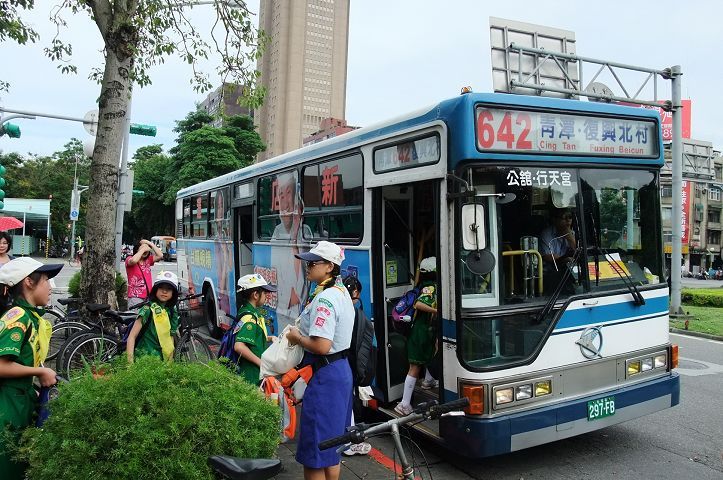 吼!到了快 9 點「遊覽車」才姍姍來遲,只是怎麼是「公車」啊,