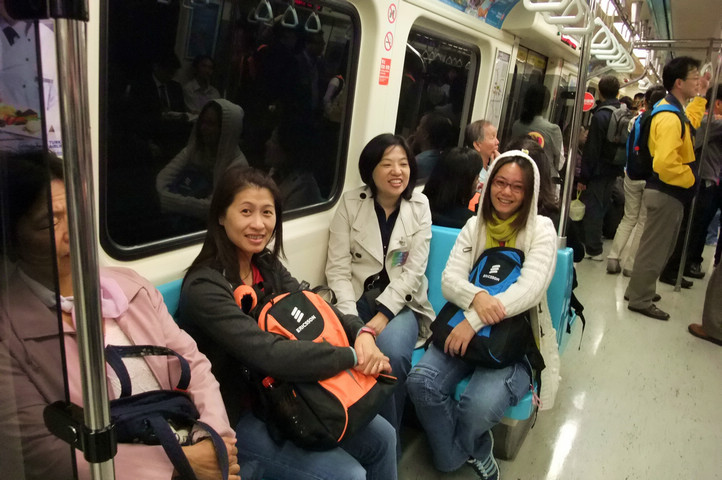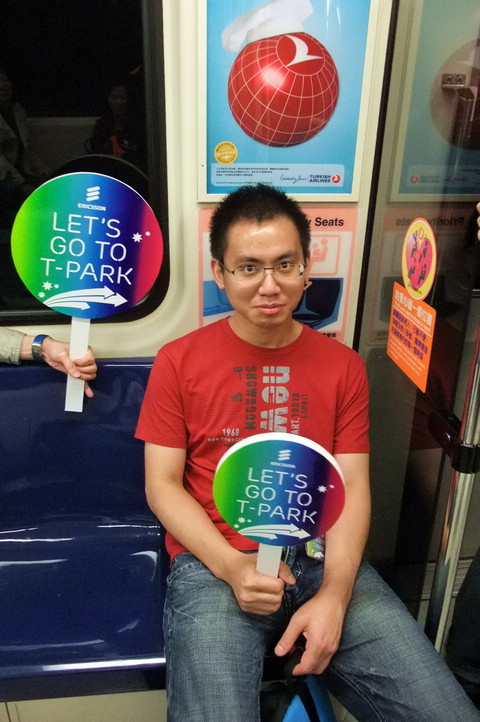 因為他很勇敢的坐在深藍色的位子上,但當時的車廂很空就是了啦! x-D