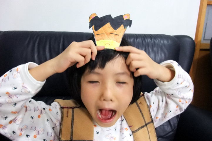 「就是像這樣戴在頭上,然後到別的班上去表演的!」:Wendy 說。