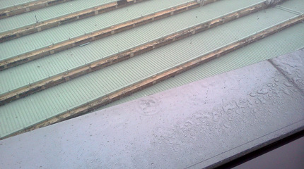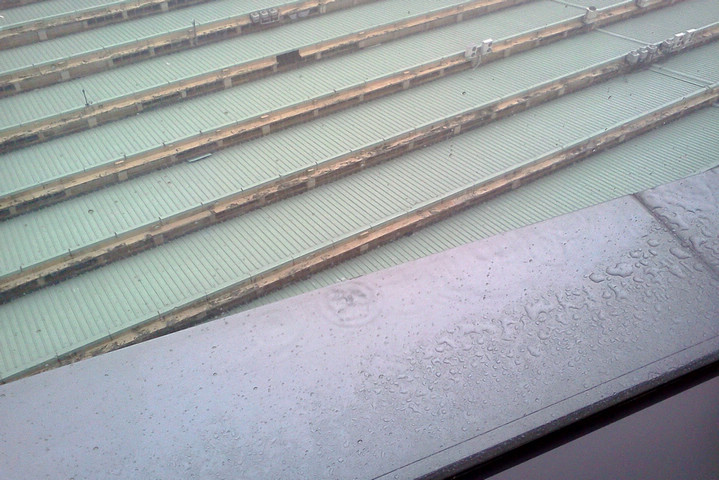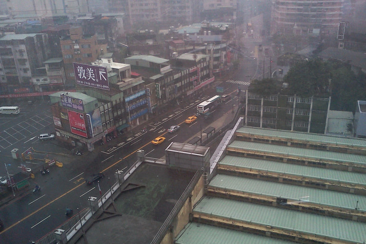 從辦公室的落地窗往外望去,吼!雨勢真的是很驚人啊!