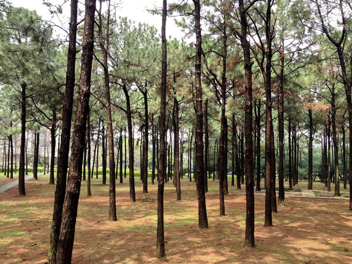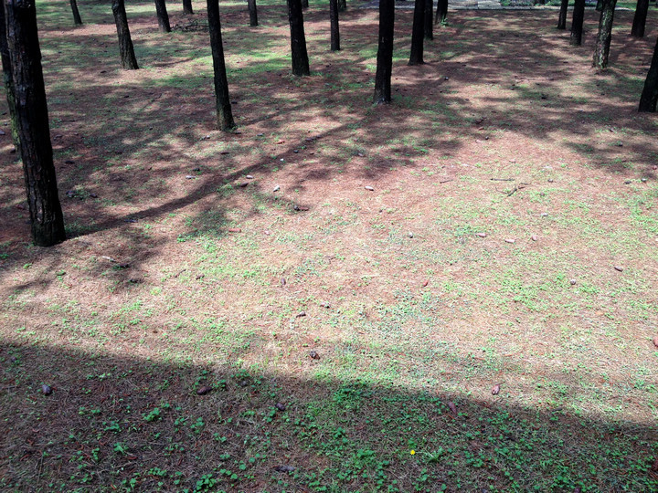 午間步出教室、休息一下,看到一大片的松樹林心情頓時開朗了起來。